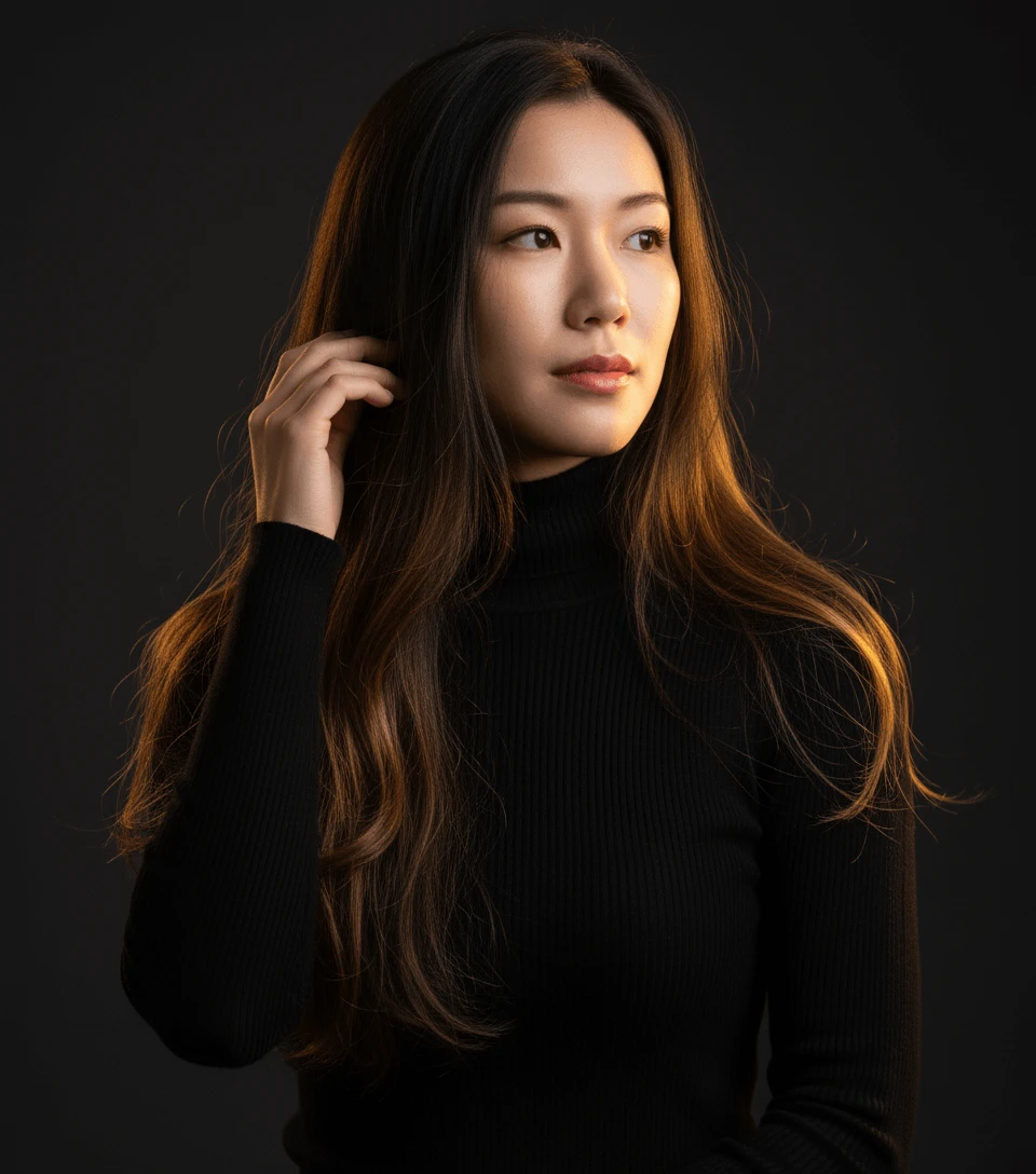 studio lighting / strong contrast / warm golden tones / dark background